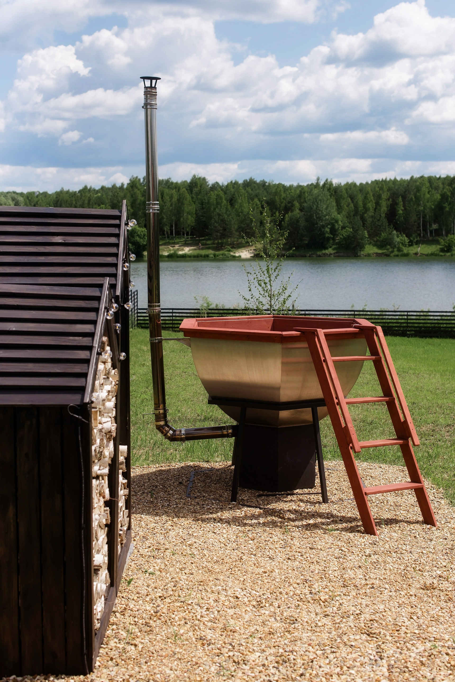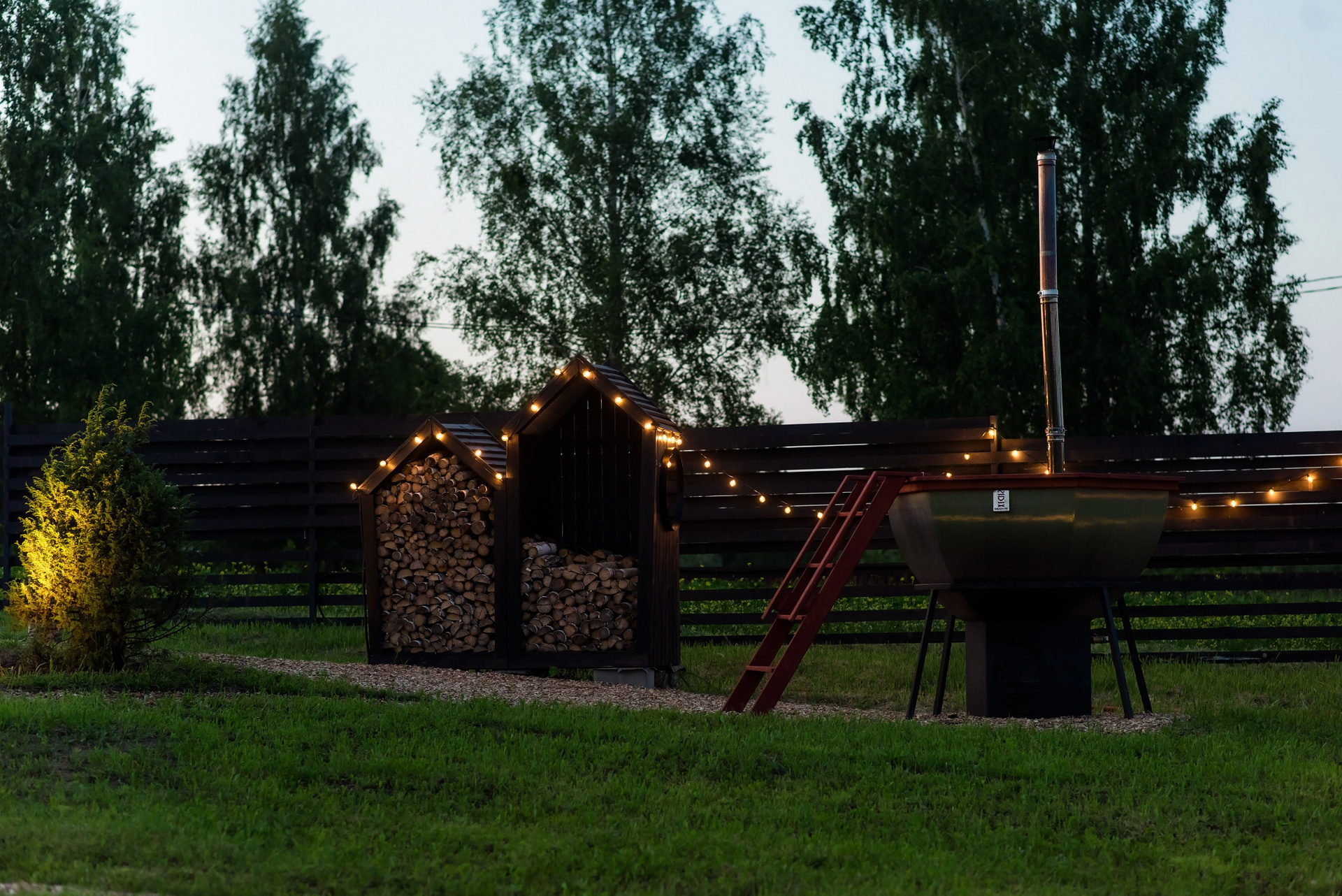 Наша территория. Глэмпинг. Аренда дома для отдыха в Брянске. Банный чан, зона BBQ. Дом на озере в Брянске. Отдых Брянск